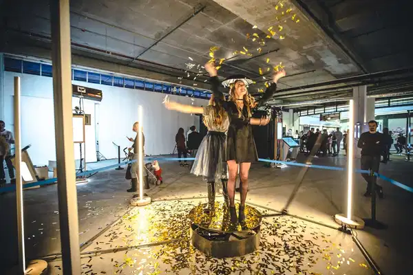 An interactive station for company events where attendees can take photos, Videos, or GIFs. It is often designed to match the event’s theme or branding.